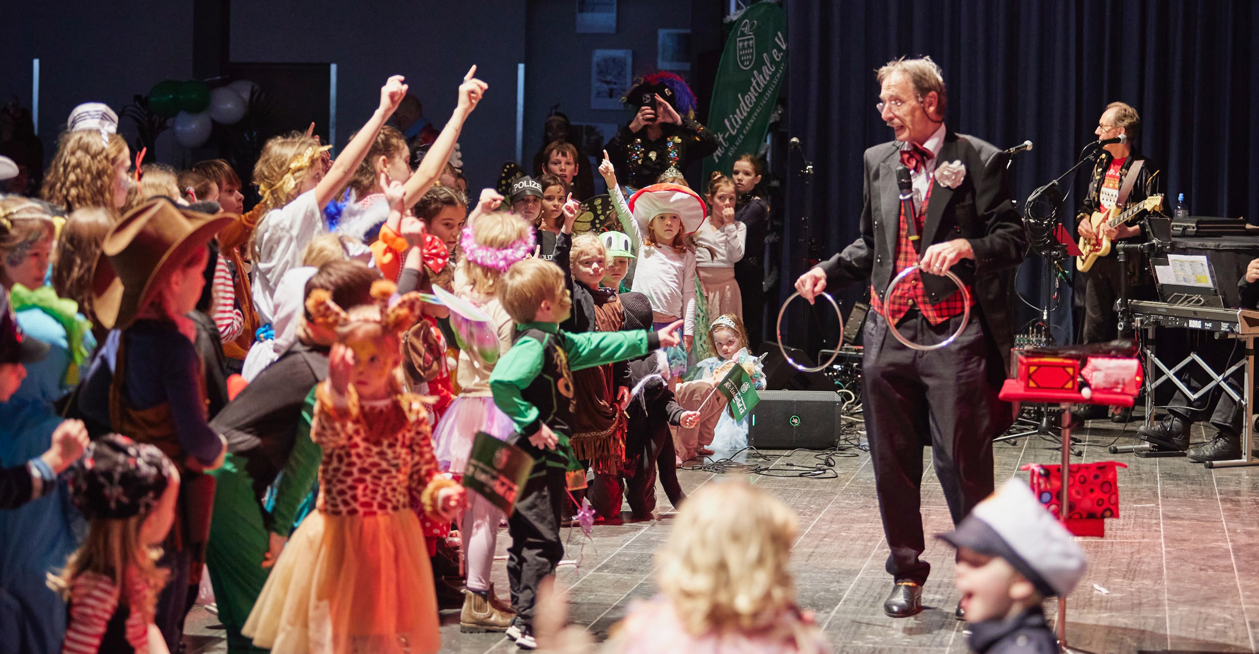 Platz da für unsere kleinsten Jecken heißt es auf der Kinderkostümsitzung in der Aula des Apostelgymnasiums. Hier bietet sich viel Platz zum Tanzen, Singen und Lachen. Liebe Eltern, aufgepasst! Die Karten sind schnell vergriffen.